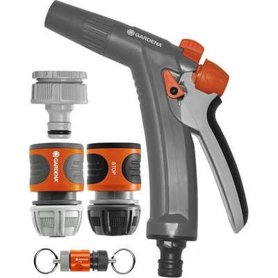 Gardena 18900-20 je súprava pre ručné polievanie. Sada obsahuje: - nákrutku s 1" záviton z redukciou na 3/4" - rýchlospojku - stopspojku - ručný postrekovač